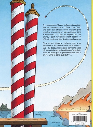 En vacances en Alsace, Jeanjean et Lefranc font la connaissance d'Eline Van Dijck. De l'autre côté du globe, dans le Bush d'Afrique du Sud, d'étranges événements ont lieu dans le parc Van Dijck, un lieu de protection et de découverte de la vie sauvage administré par son grand-père, Geert. Des animaux y sont abattus et les touristes se font de plus en plus rares. A Strasbourg, alors qu'ils se reposent après leur journée de ski, Jeanjean et Lefranc sont réveillés en pleine nuit par des cris : Eline vient d'être enlevée. Alors que la crise de l'apartheid est à son sommet en Afrique du Sud, pourquoi cette jeune fille s'est-elle faite enlever ? Qui aurait intérêt à faire chanter Geert Van Dijck ?