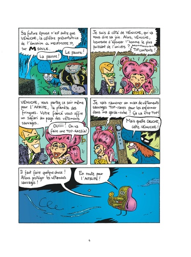 Supermuscleman va se marier ! Il emmène Vénuche, sa fiancée, en Afripe, la planète des vêtements sauvages. Le docteur Krok leur organise un safari pour chasser l'Etalon haut et le Boa-résille. Sardine, P'tit Lulu et le capitaine Epaule jaune sont de la partie. Empêcheront-ils Vénuche de capturer les habits et de les enfermer dans son affreuse garde-robe ?