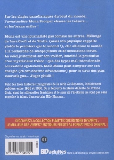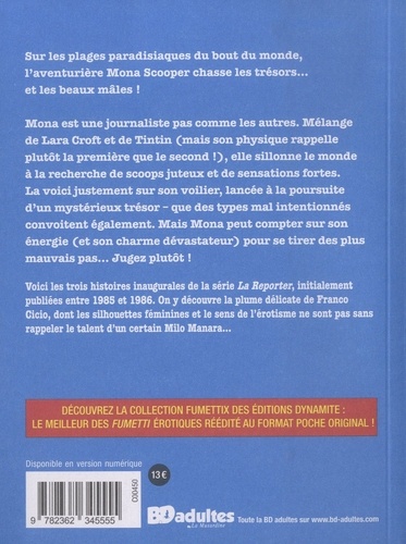 Sur les plages paradisiaques du bout du monde, l'aventurière Mona Scooper chasse les trésors... et les beaux mâles ! Mona est une journaliste pas comme les autres. Mélange de Lara Croft et de Tintin (mais son physique rappelle plutôt la première que le second ! ), elle sillonne le monde à la recherche de scoops juteux et de sensations fortes. La voici justement sur son voilier, lancée à la poursuite d'un mystérieux trésor - que des types mal intentionnés convoitent également. Mais Mona peut compter sur son énergie (et son charme dévastateur) pour se tirer des plus mauvais pas... Jugez plutôt !