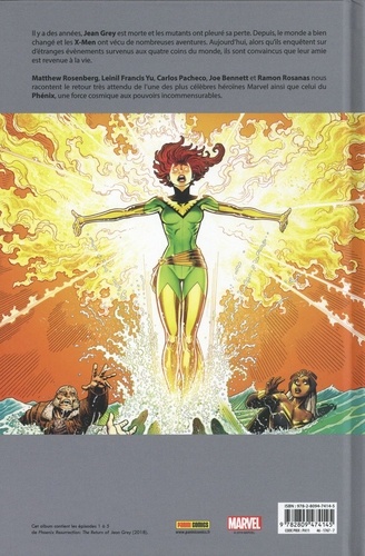 Il y a des années, Jean Grey est morte et les mutants ont pleuré sa perte. Depuis, le monde a bien changé et les X-Men ont vécu de nombreuses aventures. Aujourd'hui, alors qu'ils enquêtent sur d'étranges événements survenus aux quatre coins du monde, ils sont convaincus que leur amie est revenue à la vie. Matthew Rosenberg, Leinil Francis Yu, Carlos Pacheco, Joe Bennett et Ramon Rosanas nous racontent le retour très attendu de l'une des plus célèbres héroïnes Marvel ainsi que celui du Phénix, une force cosmiques aux pouvoirs incommensurables. Cet album contient les épisodes 1 à 5 de Phoenix Resurrection : The Return of Jean Grey (2018).