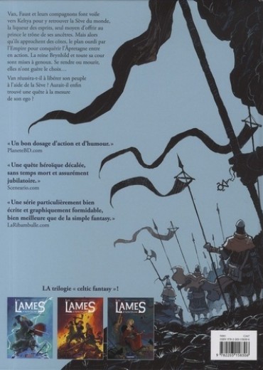 Van, Faust et leurs compagnons font voile vers Keltya pour y retrouver La Sève du monde, la liqueur des ancêtres, seule capable d'offrir au prince le trône de ses ancêtres. Mais au moment même où ils s'apprêtent à toucher terre, le plan ourdi par l'Empire pour conquérir l'Apretagne entre en action. La reine Brynhild et toute sa cour sont emprisonnées. Se rendre ou mourir, elles n'ont guère le choix... Tandis que Van, dernier espoir du petit royaume, disparaît dans un naufrage, Faust et Athanasia sont réduits en esclavage et sur le point d'être exécutés dans l'arène ! La conclusion de cette trilogie de " celtic fantasy ".