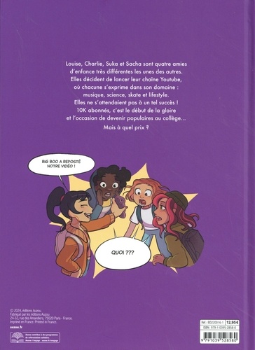 Avoir une chaîne You Tube qui cartonne, c'est le rêve de Louise, Charlie, Suka et Sacha ! Arriveront-elles au 10K d'abonnés ? Louise, Charlie, Suka et Sacha sont 4 amies d'enfance on ne peut plus différentes. Lorsqu'elles décident de lancer leur chaîne Youtube pour parler chacune de leur spécialité, elles ne s'attendaient pas à un tel succès ! 10K d'abonnés, c'est le début du succès, et l'occasion, de, peut-être, enfin devenir populaires au collège... Mais à quel prix ?