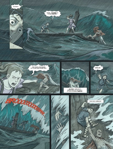 La quête fabuleuse menée par Alcyon et Phoebe continue dans ce deuxième tome, à travers un monde mythologique de plus en plus mystérieux et dangereux. Alcyon et Phoebe sont partis à l'aventure pour retrouver un collier légendaire, pensant ainsi pouvoir réparer une injustice faite à leur tribu et à leurs pères respectifs. Aidés par Kirilos, un jeune Sparte, les jeunes amis se sont embarqués sur la mer Egée, mais ils sont poursuivis par un tueur qui a pour mission de les empêcher d'accomplir leur quête fabuleuse. Ils découvrent bientôt la réalité de créatures qu'ils croyaient légendaires, comme les fameuses harpies ! Deuxième tome de la trilogie mythologique, créée par Christophe Ferreira et Richard Marazano. Une quête fabuleuse menée par deux jeunes héros dans une Grèce antique peuplée de monstres magiques.