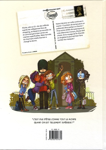 Combien de temps peut-on prétendre être quelqu'un d'autre ? Alyssa continue de cacher son Q. I de 160, mais un voyage à Londres pourrait bien faire tomber les masques... Alyssa, intello infiltrée auprès de collégiennes fans de shopping, se faisait à sa nouvelle vie. Mais l'arrivée de Damien a changé la donne. Doit-elle continuer à mentir ? Entre drôles de quiproquos et vrais dilemmes moraux, Alyssa doit choisir. Il est peut-être temps de se montrer telle qu'elle est réellement. Un voyage de classe en Angleterre : c'est l'occasion !