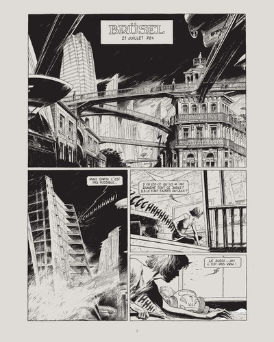 Brüsel, 21 juillet 784. Constant Abeels répertorie avec patience les pierres qui se matérialisent mystérieusement dans les différentes pièces de son appartement. Toutes pèsent exactement le même poids : 6793 grammes - un nombre premier... Dans un immeuble voisin, une mère de famille constate, de la même manière, que du sable s'accumule avec régularité dans son appartement, tandis qu'un peu plus loin, le patron et chef cuisinier de la célèbre brasserie Maurice découvre qu'il perd du poids, sans maigrir pour autant... Au fil des jours, ces étranges manifestations ne font que s'accentuer. Une femme arrive spécialement de Pâhry pour enquêter sur ces faits insolites : Mary Von Rathen, celle qu'on a autrefois surnommée " l'enfant penchée ". Elle découvre bientôt que ces phénomènes convergent tous vers une même personne : Gholam Mortiza Khan, un guerrier Bugtis venu tout récemment à Brüsel pour vendre des bijoux... Dans une profusion de décors urbains d'une richesse et d'une inventivité exceptionnelles, Schuiten et Peeters renouent avec les atmosphères inimitables du cycle des Cités Obscures.