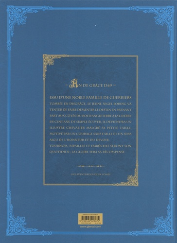 Petit par la taille. Grand par le destin. An de grâce 1349. Issu d'une noble famille de guerriers tombée en disgrâce, le jeune Nigel Loring va tenter de faire démentir le destin en prenant part aux côtés du roi d'Angleterre à la guerre de Cent Ans. De simple écuyer, il deviendra un illustre chevalier malgré sa petite taille, motivé par un courage sans faille et un sens aigu de l'honneur et du devoir. Tournois, ripailles et embûches seront son quotidien ; la gloire sera sa récompense. S'il est moins connu que Sherlock Holmes, Sir Nigel n'en reste pas moins l'un des romans les plus passionnants d'Arthur Conan Doyle. Une aventure picaresque menée par un héros fin et subtil, loin des stéréotypes du chevalier sans peur et sans reproche, à redécouvrir en BD grâce aux talents conjugués de Roger Seiter et Christian Gine.