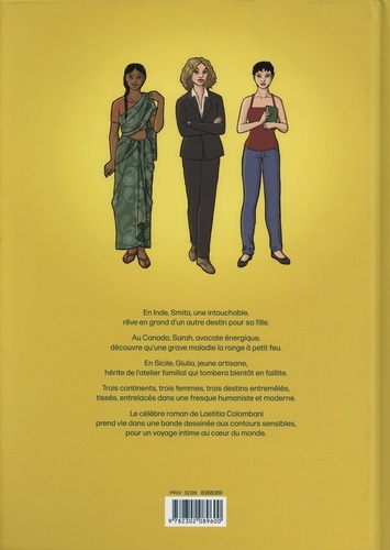 Trois continents, trois vies, trois destins entremêlés, tissés, entrelacés dans une fresque humaniste et moderne. Des tréfonds de L'Inde pauvre aux immenses buildings canadiens, en passant par la flamboyante Sicile, le destin de Smita, Sarah et Giuila, liées sans le savoir, tisse une tresse d'espoir et de solidarité. Un voyage au coeur de la condition des femmes du monde moderne et un hommage à toutes celles qui se battent pour leur liberté.
