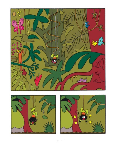 Il est petit Il est poilu C'est Petit Poilu ! Le v'là parti de bon matin, Le v'là parti et tout va bien Mais ? ... Que se passe-t-il ? Ca se bouscule Et tout bascule ! La jungle humide et sombre Une petite indigène sympathique Une tribu de cannibales gloutons Et distribution générale de gâteaux à la crème fraiche ! Vas-y Petit Poilu FONCE !