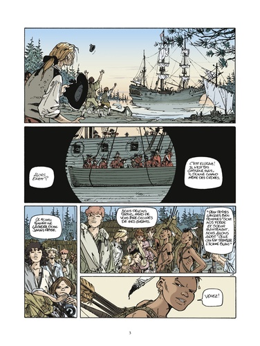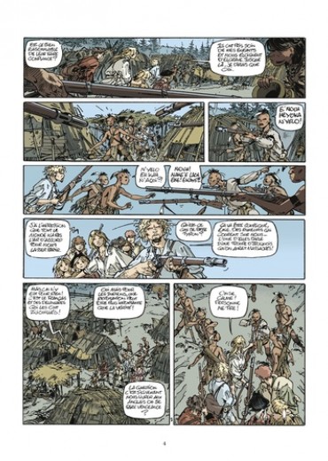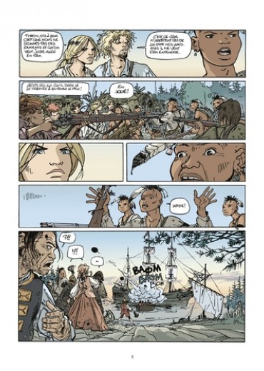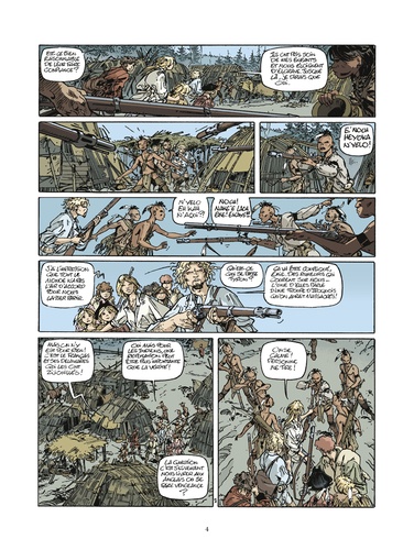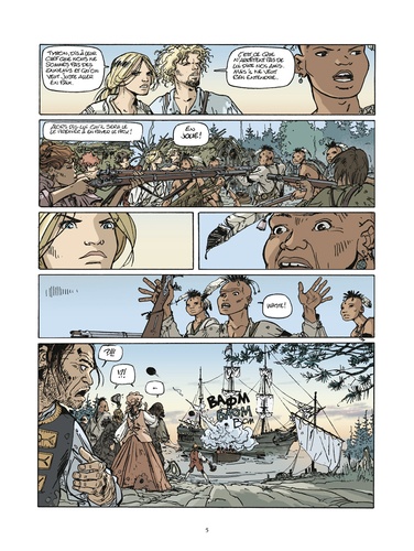 Un tueur psychopathe, un major sanguinaire, une ancienne tenancière de bordel et l'une de ses protégées, un mousse adepte du couteau, un chaperon silencieux et impitoyable, un dandy aventurier, ami des Indiens. Voici les rares rescapés du naufrage du "Bristol", voici les compagnons d'Emie. Ils l'accompagnent et lui sont fidèles, car sans elle ils n'auraient jamais atteint vivants les côtes américaines. Nous sommes en 1755, ici, Français et Anglais se disputent le Nouveau Monde, sous le regard des Indiens. Pour Emie et sa petite troupe un seul objectif : atteindre un village caché, loin des conflits, afin d'oublier leur histoire passée...