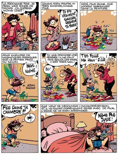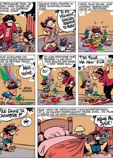 Dès la maternelle, Noémie s' avère être un artiste. Au grand désespoir de ses parents. Et elle le restera quel que soit le prix à en payer. En équilibre parfait entre tendresse et humour, Florence Cestac nous raconte comment un petit canard féminin, pas exactement semblable aux autres, réussit quand même son parcours. Avec ce sujet, qui la touche de près, l' auteur... (1' auteure ?... 1' auteuse ?... l'autruche ?...) trouve toute la verve chaleureuse et drôle qui animait son mémorable Démon de midi.