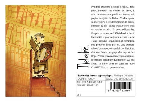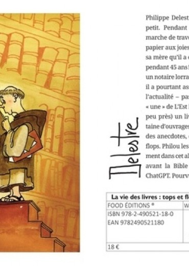 Dessinateur de presse, Philippe Delestre commence sa carrière au Républicain Lorrain avant d'être engagé par L'Est Républicain (1975) où il réalise le dessin de presse à la "une" du quotidien pendant quarante-trois ans ! Tout de même... Il collabore à divers quotidiens régionaux (Le Courrier de l'Ouest, Presse-Océan, Le Maine libre) ainsi qu'à des journaux généralistes ou revues spécialisées (International Herald Tribune, Cheval magazine, Golf européen. Il est également l'auteur d'une quarantaine d'albums. Le dernier "Encres marines" est paru en septembre 2022. "La vie des livres : des tops et des flops" est son septième album chez Food Editions.