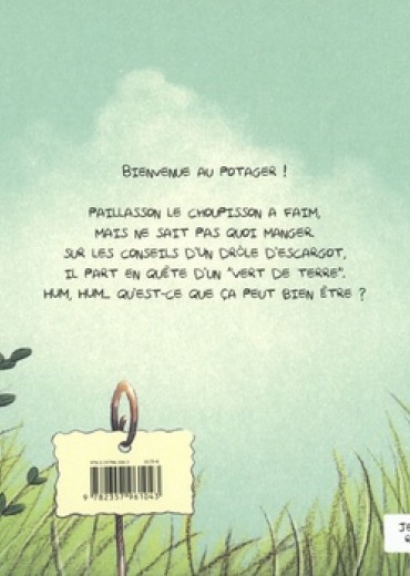 Bienvenue au potager ! Partez en déambulation avec un choupisson pour des aventures (extra)ordinaires ! Paillasson, le candide choupisson, émerge difficilement d'une bonne nuit de sommeil. A peine réveillé, le jeune hérisson se retrouve dans une embarrassante situation : il a faim, mais ne sait pas quoi manger. Un escargot lui conseille alors de partir en quête d'un "vert de terre". Mais qu'est-ce que ça peut bien être ? Heureusement, Paillasson fait rapidement la rencontre d'un étrange individu - petit, tout rose et rampant - qui accepte de lui venir en aide... En tout cas, il a l'air de drôlement s'y connaître en "vert"...
