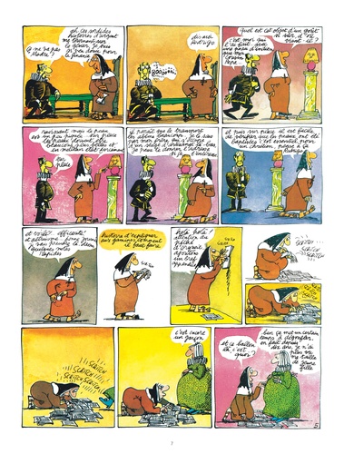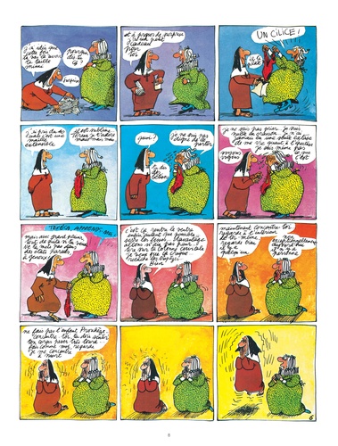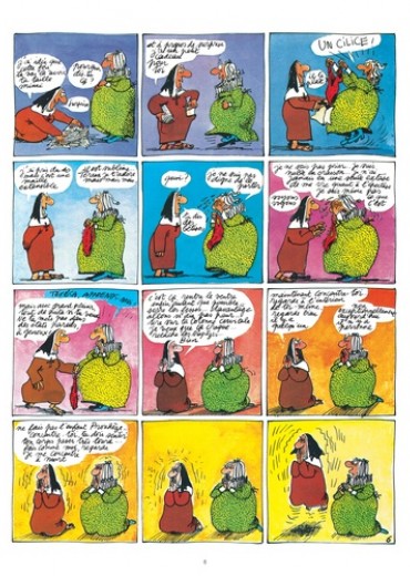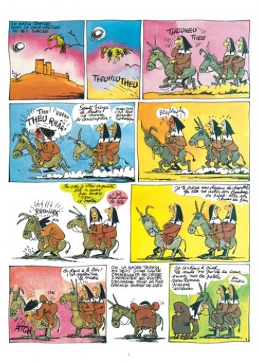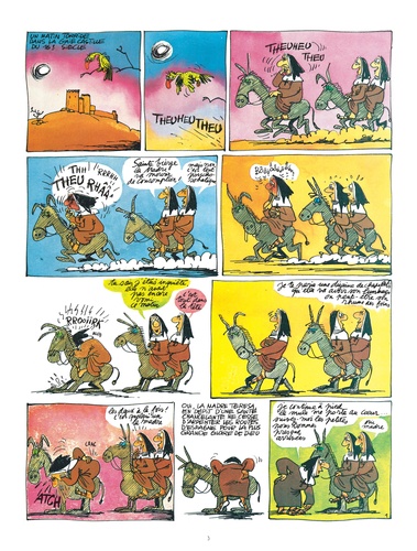 Par un matin torride dans la gaie Castille du XVIe siècle, Thérèse d'Avila s'en allait sur son âne. C'est ainsi que commence l'hagiographie pour le moins décalée de la Sainte, sous la plume brillante de Claire Bretécher qui n'a oublié ni sa forte et picaresque personnalité, ni ses performances mystiques, ni sa dimension intellectuelle. Lévitation, denier du culte, exorcisme et construction d'un couvent, tout ce qui fait le quotidien d'une religieuse hors du commun est merveilleusement brossé dans cette indispensable réédition en grand format.