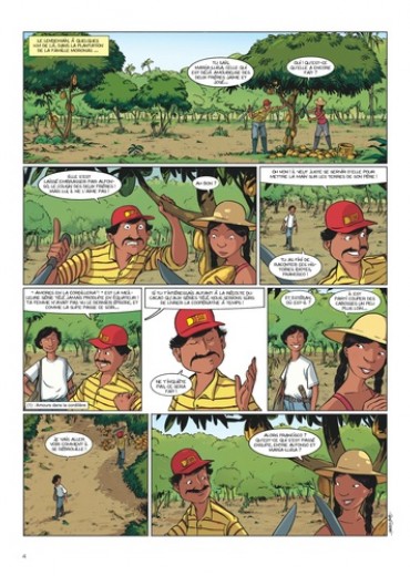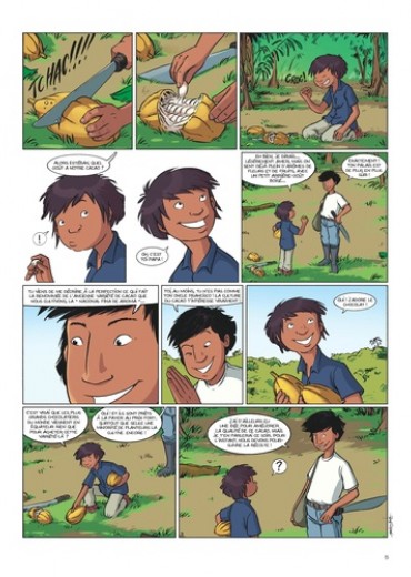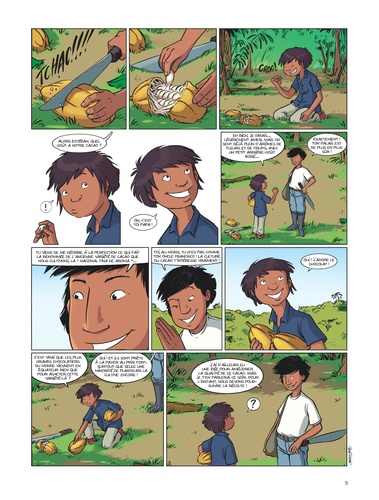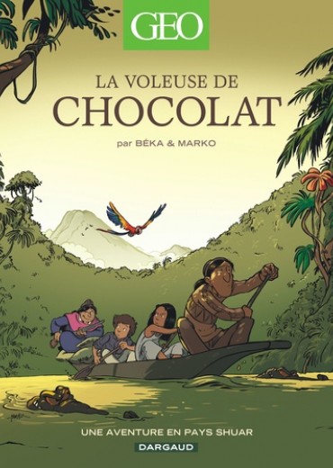 De la cordillère des Andes à la forêt amazonienne, ce quatrième tome de Géo BD est une incroyable expédition, à la découverte des mystères du cacao. Estéban un jeune garçon équatorien, part avec son oncle au coeur de la forêt vierge amazonienne, à la recherche d'une fève de cacao rare et précieuse. Ils devront pour cela se rendre au coeur du territoire des Indiens Shuars, autrefois appelés "Jivaros", les terribles réducteurs de tête. Estéban fera la connaissance de la jeune Selva, apprentie chaman, et, ensemble, ils devront déjouer les plans de la terrible Voleuse de chocolat qui rêve de s'emparer du précieux cacao. De l'aventure et du mystère au coeur de la forêt amazonienne : un beau voyage initiatique sur les traces de la fabrication du cacao.