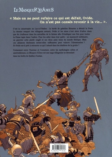 Conclusion d'une saga fantastique et mystique... C'est la catastrophe au Lac-à-l'Ombre : la horde de gobelins hirsutes a détruit la Porte. Le dernier rempart des villageois anéanti, Ovide et les siens n'ont alors d'autre choix que de s'enfoncer dans les entrailles de la falaise afin d'éradiquer une fois pour toutes la Chose tapie dans l'ombre. Pour les aider dans leur quête : un manuscrit millénaire, un guerrier celte plutôt cinglé et ses deux amis issus du monde féérique. Mais ces alliances douteuses seront-elles suffisantes pour vaincre l'Abomination ? Et Ovide est-il prêt à retrouver ce qui l'attend dans les ténèbres de la grotte ? Croisement entre l'horreur et l'aventure, entre les mythologies celtes et amérindiennes, Le Mangeur d'Ames est une saga villageoise se déroulant dans les forêts du Québec d'antan.