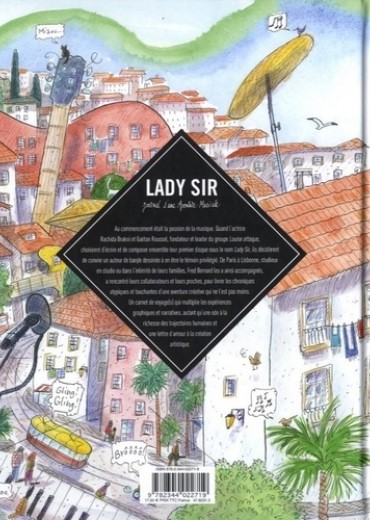 Au commencement était la passion de la musique. Quand l'actrice Rachida Brakni et Gaëtan Roussel, fondateur et leader du groupe Louise attaque, choisirent d'écrire et de composer ensemble leur premier disque sous le nom Lady Sir, ils décidèrent de convier un auteur de bande dessinée à en être le témoin privilégié. De Paris à Lisbonne, studieux en studio ou dans l'intimité de leurs familles, Fred Bernard les a ainsi accompagnés, a rencontré leurs collaborateurs et leurs proches, pour livrer les chroniques atypiques et touchantes d'une aventure créative qui ne l'est pas moins. Un carnet de voyage(s) qui multiplie les expériences graphiques et narratives, autant qu'une ode à la richesse des trajectoires humaines et une lettre d'amour à la création artistique.