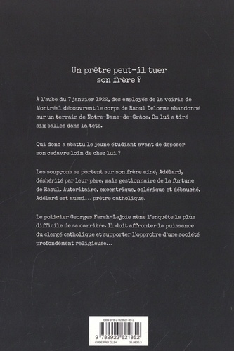 Un prêtre peut-il tuer son frère ? A l'aube du 7 janvier 1922, des employés de la voirie de Montréal découvrent le corps de Raoul Delorme abandonné sur un terrain de Notre-Dame-de-Grâce. On lui a tiré six balles dans la tête. Qui donc a abattu le jeune étudiant avant de déposer son cadavre loin de chez lui ? Les soupçons se portent sur son frère aine, Adélard, déshérité par leur père, mais gestionnaire de la fortune de Raoul.Autoritaire, excentrique, colérique et débauché, Adélard est aussi... prêtre catholique. Le policier Georges Farah-Lajoie mène l'enquête la plus difficile de sa carrière. Il doit affronter la puissance du clergé catholique et supporter l'opprobre d'une société profondément religieuse...