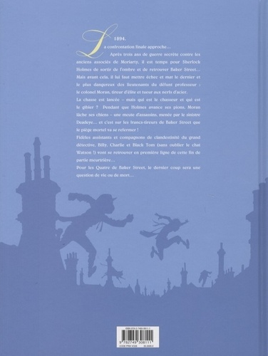 La confrontation finale approche... 1894. Après trois ans de guerre secrète contre les anciens associés de Moriarty, il est temps pour Sherlock Holmes de sortir de l'ombre et de retrouver Baker Street... Mais avant cela, il lui faut mettre échec et mat le dernier et le plus dangereux des lieutenants du défunt professeur : le Colonel Moran, tireur d'élite et tueur aux nerfs d'acier. La chasse est lancée - mais qui est le chasseur et qui est le gibier ? Pendant que Holmes avance ses pions, Moran lâche ses chiens : une meute d'assassins, menée par le sinistre Deadeye... et c'est sur les francs-tireurs de Baker Street que le piège mortel va se refermer ! Fidèles assistants et compagnons de clandestinité du grand détective, Billy, Charlie et Black Tom (sans oublier le chat Watson ! ) vont se retrouver en première ligne de cette fin de partie meurtrière. Pour les Quatre de Baker Street, le dernier coup sera une question de vie ou de mort... Tant par la qualité de ses intrigues que par la virtuosité du trait de David Etien, Les Quatre de Baker Street s'est affirmé comme un incontournable de la BD moderne. Avec ce tome 7, les auteurs concluent leur " trilogie " consacrée à l'affrontement entre Sherlock Holmes et le colonel Moran.