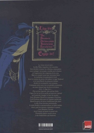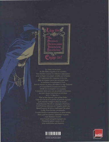 La légende parle d'un "âge d'or, où vallées et montagnes n'étaient entravées d'aucune mu-raille. Où les hommes allaient et venaient librement. . ". Mais ce temps lointain est bien révolu. Le royaume est accablé par la disette et les malversations des seigneurs de la cour. A la mort du vieux roi, sa fille Tilda s'apprête à monter sur le trône pour lui succéder. Avec le soutien du sage Tankred et du loyal Bertil, ses plus proches conseillers et amis, elle entend mener à bien les réformes nécessaires pour soulager son peuple des maux qui l'accablent. Mais un complot mené par son jeune frère la condamne brusquement à l'exil. Guidée par des signes étranges, Tilda décide de reconquérir son royaume avec l'aide de ses deux compagnons. Commence alors un long périple, où leur destin sera lié à "L'âge d'or" ; bien plus qu'une légende, bien plus que l'histoire passée des hommes libres et de leur combat, c'est un livre oublié dont le pouvoir est si grand qu'il changera le monde.