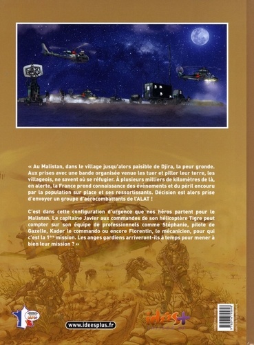 Au Malistan, dans le village jusqu'alors paisible de Djira, la peur gronde. Aux prises avec une bande organisée venue les tuer et piller leur terre, les villageois, ne savent où se réfugier. A plusieurs milliers de kilomètres de là, en alerte, la France prend connaissance des évènements et du péril encouru par la population sur place et ses ressortissants. Décision est alors prise d'envoyer un groupe d'aérocombattants de l'ALAT ! C'est dans cette configuration d'urgence que nos héros partent pour le Malistan. Le capitaine Javier au commande de son hélicoptère Tigre peut compter sur son équipe de professionnels comme Stéphanie, pilote de Gazelle, Kader le commando ou encore Florentin, le mécanicien, pour qui c'est la 1ère mission. Les anges gardiens arriveront-ils à temps pour mener à bien leur mission ?