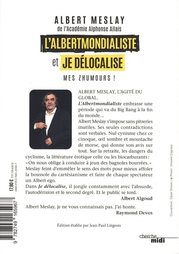 " Albert Meslay, je ne vous connaissais pas. J'ai honte. " Raymond Devos ALBERT MESLAY, L'AGITE DU GLOBAL. L'Albertmondialiste embrasse une période qui va du Big Bang à la fin du monde... Albert Meslay s'impose sans pitreries inutiles. Ses seules contradictions sont verbales. Nul cynisme chez ce cinoque, oeil sombre et moustache de morse, qui donne son avis sur tout. Sur la retraite, les dangers du cyclisme, la littérature érotique celte ou les biocarburants : " On nous oblige à conduire à jeun des bagnoles bourrées. " Meslay feint d'emmêler le sens des mots pour mieux affoler la boussole du cartésianisme et faire de chaque spectateur un Albert ego. " Dans Je délocalise , il jongle constamment avec l'absurde, l'autodérision et le second degré. Et le public se tord. " Albert Algoud PRIX RENE DE OBALDIA de la forme courte 2020 - Prix spécial du jury Prix René de Obaldia 2020