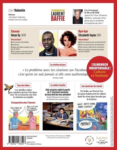 Laurent Baffie vous présente son almanach ! A chaque jour son saint, son dicton, un quiz, un chiffre, des infos, du rire... 365 jours d'humour et de culture.