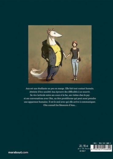 Ana est une étudiante un peu en marge. Elle fuit tout contact humain. Atteinte d'éco-anxiété Ana éprouve des difficultés à se nourrir. Sa vie s'articule entre ses cours à la fac, ses visites chez le psy et ses conversations avec 01m, un être protéiforme qui peut aussi prendre une apparence humaine. Il est le seul avec qui elle arrive à communiquer. Olm connaît les blessures d'Ana...