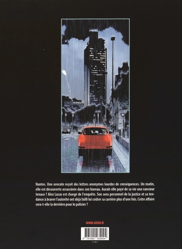 Nantes. Une avocate reçoit des lettres anonymes lourdes de conséquences. Un matin, elle est découverte assassinée dans son bureau. Aurait-elle payé de sa vie une rancoeur tenace ? Alex Lucas est chargé de l'enquête. Son sens personnel de la justice et sa tendance à braver l'autorité ont déjà failli lui coûter sa carrière plus d'une fois. Cette affaire sera-t-elle la dernière pour le policier ?