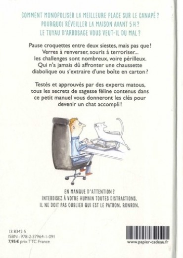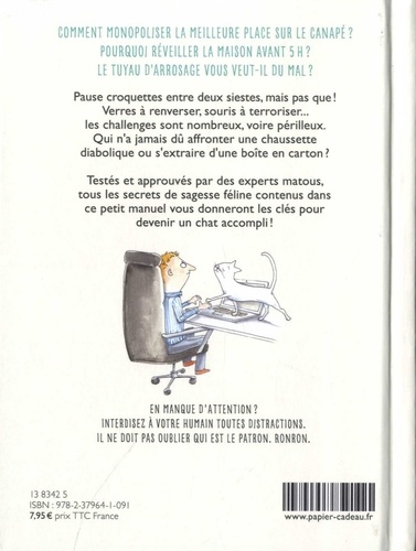 Comment monopoliser la meilleure place sur le canapé ? Pourquoi réveiller la maison avant 5 ? h ? Le tuyau d'arrosage vous veut-il du mal ? Pause croquettes entre deux siestes, mais pas que ? ! Verres à renverser, souris à terroriser... les challenges sont nombreux, voire périlleux. Qui n'a jamais dû affronter une chaussette diabolique ou s'extraire d'une boîte en carton ? Testés et approuvés par des experts matous, tous les secrets de sagesse féline contenus dans ce petit manuel vous donneront les clés pour devenir un chat accompli !