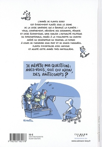L'année de Plantu 2020 est évidemment placée sous le signe de la crise sanitaire qui a ébranlé la planète : Virus, confinement, héroïsme des soignants, pénurie et crise économique, sans oublier l'actualité politique ou internationale, passés à la moulinette du crayon acéré du dessinateur du journal le monde. A coups de Marianne sous perf et de souris masquées, Plantu immortalise avec humour et acuité cette année très parti.