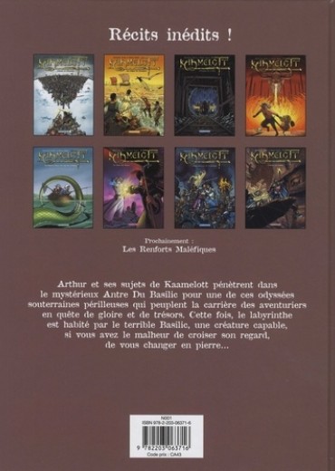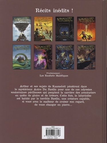 Arthur et ses sujets de Kaamelott pénètrent dans le mystérieux Antre Du Basilic pour une de ces odyssées souterraines périlleuses qui peuplent la carrière des aventuriers en quête de gloire et de trésors. Cette fois, le labyrinthe est habité par le terrible Basilic, une créature capable, si vous avez le malheur de croiser son regard, de vous changer en pierre...
