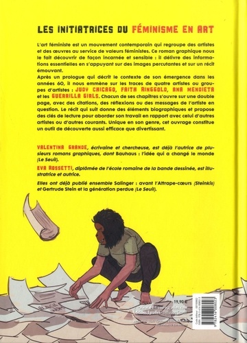L'art féministe est un mouvement artistique contemporain qui regroupe des artistes et des oeuvres revendiquant ou s'inscrivant dans un discours féministe. Ce roman graphique italien (déjà traduit en anglais et en allemand) nous le fait découvrir de façon aussi efficace que divertissante. Après un prologue qui décrit le contexte de sa naissance dans les années 60, il nous emmène sur les traces de 4 artistes : Judy Chicago, Faith Ringgold, Ana Mendieta et Guerrilla girls. Chacun des chapitres commence par une double page d'ouverture, avec des citations, des réflexions ou des messages de l'artiste en question. Le récit qui suit donne des éléments biographiques, qui sont parfois des moments clés de l'artiste, raconte la genèse de sa pensée artistique, donne à voir parfois ou explique une oeuvre clé, et met son travail en rapport avec l'oeuvre d'autres artistes ou d'autres courants culturels.