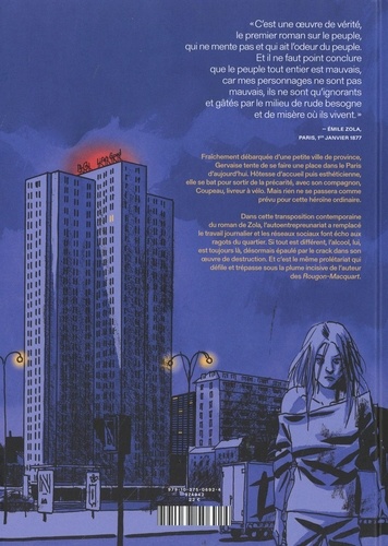 Fraîchement débarquée d'une petite ville de province, Gervaise tente de se faire une place dans le Paris d'aujourd'hui. Hôtesse d'accueil puis esthéticienne, elle se bat pour sortir de la précarité, avec son compagnon, Coupeau, livreur à vélo. Mais rien ne se passera comme prévu pour cette héroïne ordinaire. Dans cette transposition contemporaine du roman de Zola, l'auto-entrepreunariat a remplacé le travail journalier et les réseaux sociaux font écho aux ragots du quartier. Si tout est différent, l'alcool, lui, est toujours là, désormais épaulé par le crack dans son oeuvre de destruction. Et c'est le même prolétariat qui défile et trépasse sous la plume incisive de l'auteur des Rougon-Macquart.