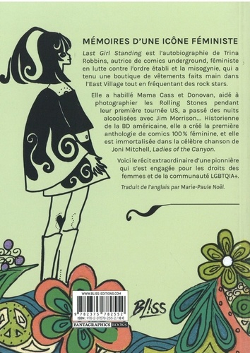 Last Girl Standing est l'autobiographie de Trina Rabbins, autrice de comics underground, féministe en lutte contre l'ordre établi et la misogynie, qui a tenu une boutique de vêtements faits main dans l'East Village tout en fréquentant des rock stars. Elle a habillé Mama Cass et Donovan, aidé à photographier les Rolling Stones pendant leur première tournée US, a passé des nuits alcoolisées avec Jim Morrison... Historienne de la BD américaine, elle a créé la première anthologie de comics 100 % féminine, et elle est immortalisée dans la célèbre chanson de Joni Mitchell, Ladies of the Canyon. Voici le récit extraordinaire d'une pionnière qui s'est engagée pour les droits des femmes et de la communauté LGBTQIA+.