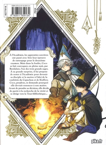 A l'Académie, les apprenties sorcières ont passé avec brio leur épreuve de rattrapage pour le deuxième examen. Mais dans la foulée, Coco se fait convoquer, en pleine nuit, par Berdalute, l'un des trois grands sages. A sa grande surprise, il lui propose de rester à l'Académie pour devenir sa disciple et la mettre à l'abri de la confrérie du Capuchon et de Kieffrey. Coco, perplexe, se demande pourquoi elle devrait renoncer à son maitre. Avant de prendre sa décision, elle décide de partir à la recherche de la vérité et se dirige vers la Tour-bibliothèque...