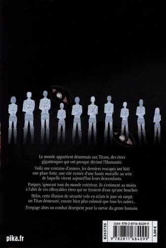 Le monde appartient désormais aux Titans, des êtres gigantesques qui ont presque décimé l'Humanité. Voilà une centaine d'années, les derniers rescapés ont bâti une place forte, une cité cernée d'une haute muraille au sein de laquelle vivent aujourd'hui leurs descendants. Parqués, ignorants tout du monde extérieur, ils s'estiment au moins à l'abri de ces effroyables êtres qui ne feraient d'eux qu'une bouchée. Hélas, cette illusion de sécurité vole en éclats le jour où surgit un Titan démesuré, encore bien plus colossal que tous les autres. S'engage alors un combat désespéré pour la survie du genre humain...