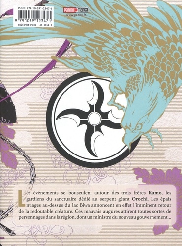 Un criminel vient troubler la tranquilité du clan Kumo en apportant avec lui la nouvelle d'une ancienne et terrifiante légende : Orochi. Alors que Soramaru réalise que son grand frère Tenka lui cache encore beaucoup de choses, il se met en quête de trouver de nouveaux moyens d'augmenter sa force. Au même moment, des étrangers tentent de retrouver Tenka pour profiter de sa connaissance du Mal ancien qui menace le pays. La course pour le contrôle du nouveau réceptacle d'Orochi semble bel et bien avoir commencé ! Karakara Kemuri, que l'on peut connaître en France après avoir vu son adaptation manga de Mars Red, a construit une partie de son parcours autour de sa licence la plus populaire : Donten ni Warau connu sous le nom Laughing Under the Clouds par le public occidental. Débutant en 2010, cette série a rapidement su trouver son public par son excellent mélange entre récit historique et folklorique au coeur de la bouillonnante ère Meiji. Ce manga en six volumes a eu tant de succès qu'une suite et un préquel ont été réalisés : Donten ni Warau Gaiden [3 volumes] et Rengoku ni Warau [14 tomes]. La série a eu le droit à une adaptation anime en série (2014) ainsi qu'une suite en film (2017) et une version en live action au cinéma (2018).