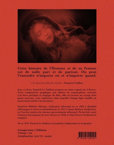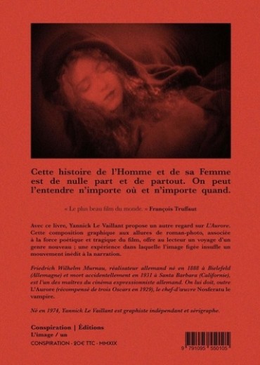 Cette histoire de l'Homme et de sa Femme est de nulle part et de partout. On peut l'entendre n'importe où et n'importe quand. Avec ce livre, Yannick Le Vaillant propose un autre regard sur L'Aurore. Cette composition graphique aux allures de roman-photo, associée à la force poétique et tragique du film, offre au lecteur un voyage d'un genre nouveau ; une expérience dans laquelle l'image figée insuffle un mouvement inédit à la narration.