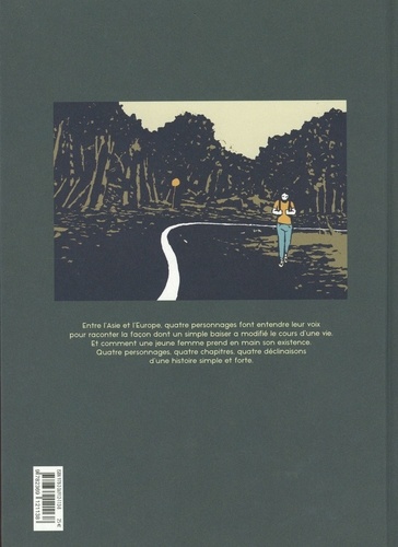 Entre l'Asie et l'Europe, quatre personnages font entendre leur voix pour raconter la façon dont un simple baiser a modifié le cours d'une vie. Et comment une jeune femme prend en main son existence. Quatre personnages, quatre chapitres, quatre déclinaisons d'une histoire simple et forte.