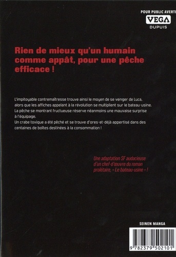 L'impitoyable contremaîtresse trouve ainsi le moyen de se venger de Luca, alors que les affiches appelant à la révolution se multiplient sur le bateau-usine. La pêche se montrant fructueuse réserve néanmoins une mauvaise surprise à l'équipage. Un crabe toxique a été pêché et se trouve d'ores-et-déjà appertisé dans des centaines de boîtes destinées à la consommation !