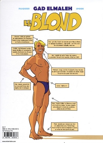 On a tous un pote qui sait tout sur tout, un pote super sportif, un pote super sociable... Eh bien, le Blond, c'est un peu tous ces mecs à la fois et bien plus encore. Le Blond, il a son propre langage : il commence toutes ses phrases par " Dis donc ! ", ponctue chaque moment-clé par " Pim, pam, poum " et les termine par " C'est pourtant simple ! ". Vous savez ?Le Blond, celui qui fait un " clac clac " parfait en enfilant ses chaussures de ski, un " schpluf " qui n'asperge pas quand il plonge, qui ne transpire pas quand il danse all night long en boîte de nuit, qui a fait " option Ikea 3e langue " et donc pour qui monter un meuble Flürgoeburg est un jeu d'enfant... Voilà, LUI ! LUI ! Celui qui nous renvoie à notre propre condition d'être humain tout simplement normal, c'est-à-dire bancal, c'est-à-dire parfois paumé, qui peut avoir la poisse. Celui qui choisit systématiquement la mauvaise caisse au supermarché, celui dont la mayonnaise de son sandwich va forcément s'étaler sur son pantalon, celui qui dévalera au moins une fois les pistes de ski à l'envers, celui pour qui le guichet de l'administration fermera juste devant lui après une heure et demie d'attente, celui qui a peur en avion, celui pour qui faire un jogging relève du masochisme, bref, L'AUTRE : vous, moi. Il était temps de lui donner un visage. C'est ce que font admirablement Gad Elmaleh, Bastien Pasquier et Jean-Baptiste Hostache, en adaptant certains sketches existants de Gad, mais aussi et surtout en créant des scénarios inédits pour cet album.