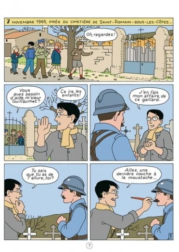 L'histoire commence un 11 novembre au milieu des années 1960 : Jeannette et Jojo participent dans leur petit village de Meuse à une célébration commémorative, et un petit événement imprévu va venir réveiller de lointains souvenirs enfouis dans la mémoire d'Edmond et Marguerite, leurs parents adoptifs ; cela décide ces derniers à raconter "leur guerre", celle de 14-18, moment de leur rencontre où ils se sont risqués à monter jusqu'aux lignes de combat, lui cherchant son père, elle, son chien oublié au moment du départ sur les routes de l'exil. Une alternance de cases sépia (pour le récit de la Grande Guerre) et de cases en couleur (pour le "présent" des années 60) rythme cette BD qui allie un scénario palpitant et des moments pleins d'humour avec des scènes chargées d'émotion, qui feront réfléchir les enfants et les familles d'aujourd'hui.