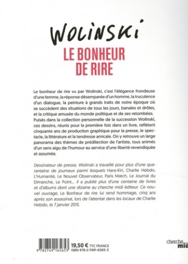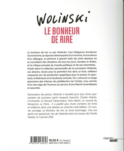 Dessins et textes d'un très grand dessinateur réunis dans un livre inédit. Le bonheur de rire vu par Wolinski, c'est l'élégance frondeuse d'une femme, la réponse désemparée d'un homme, la truculence d'un dialogue, la peinture à grands traits de notre époque où se succèdent des situations de tous les jours, banales et drôles, et la critique amusée du monde politique et de ses retombées. Puisés dans la collection personnelle de la succession Wolinski, ces dessins, réunis pour la première fois dans un livre, reflètent cinquante ans de production graphique pour la presse, le spectacle, la littérature et la tendresse amicale. On y retrouve un large panorama des thèmes de prédilection de l'artiste, tous animés d'un sens aigu de l'humour au service d'une liberté revendiquée et assumée.