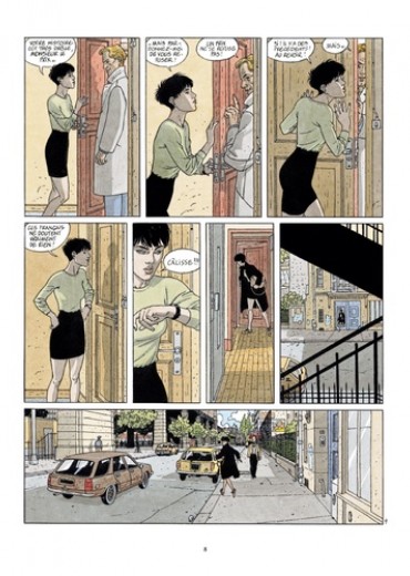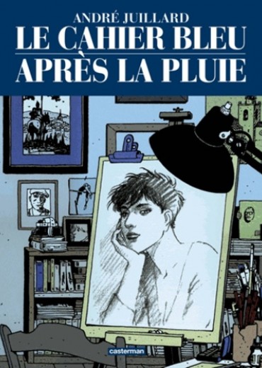 Simple en apparence, l'histoire du Cahier Bleu décline la figure classique du triangle amoureux. Une jeune femme, Louise, est aperçue nue dans son appartement parisien par Armand, depuis la rame du métro aérien tout proche. Armand, beau parleur, l'entreprend et réussit à la séduire. Louise, cependant, met bientôt fin à ce qu'elle ressent comme une liaison sans avenir, d'autant qu'elle vient de rencontrer Victor, personnage tourmenté dont la sensibilité la touche davantage. Jusqu'à ce qu'elle trouve dans sa boîte à lettres, envoyé anonymement, un cahier bleu : le journal intime de Victor, dont les premières lignes racontent de quelle manière il a un jour, dans le métro aérien, entr'aperçu le corps nu de Louise... Plus complexe qu'il n'y paraît a priori, Le Cahier bleu séduit par sa construction inattendue, qui reprend plusieurs fois le fil des mêmes événements selon des points de vue différents. Les exceptionnelles qualités graphiques de l'album achèvent d'en faire une oeuvre d'exception, récompensée à sa parution par le Prix du meilleur album au Festival d'Angoulême. Un peu plus tard, en 1998, André Juillard prolonge ce travail avec Après la pluie qui, moins qu'une véritable suite, utilise certains des personnages du Cahier bleu pour lancer une nouvelle intrigue, entre Paris et l'Italie. Ces deux ouvrages, articulés l'un à l'autre, sont proposés pour la première fois sous la forme d'une intégrale. L'ouvrage se complète d'une interview d'André Juillard réalisée par Thierry Bellefroid