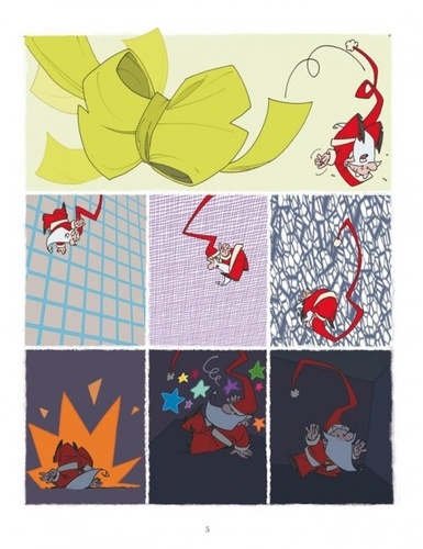 Tout d'un coup voici que notre Père Noël se fait aspirer dans son calendrier de l'Avent ! Il se retrouve transformé en jouet, prisonnier d'une boule de neige et enlisé dans une chaussette remplie de bonbons... Ah non, ce n'est pas possible ! C'est un cauchemar ! On s'imagine que la vie de Père Noël est plutôt calme et pépère avec un peu de stress en décembre. Que nenni ! C'est un boulot à plein temps toute l'année !