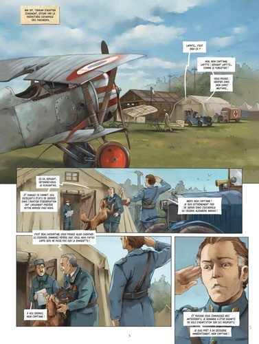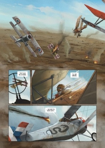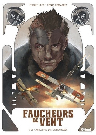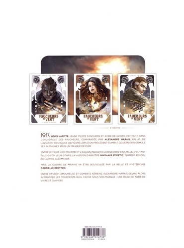 1917, Première Guerre Mondiale, front Ouest. Alexandre Marais, as de l'aviation française, a la particularité d'avoir été défiguré et de dissimuler ses blessures de guerre sous un masque. Meurtri dans sa chair et dans son âme, il n'a plus que le vol et les combats aériens comme raisons d'exister. Il était le meilleur, jusqu'à ce que Louis Lafitte, jeune pilote fanfaron et avide de gloire, soit muté dans son escadrille. Alors qu'on leur confie la mission d'abattre Nikolaus Stipetic, terreur du ciel de l'armée allemande, une rivalité s'installe entre ces deux hommes que tout oppose...Avec Faucheurs de vent, Thierry Lamy nous plonge dans l'univers passionnant des premiers combats aériens et de leurs pionniers au courage exemplaire. Une histoire de camaraderie et de rivalités au souffle romanesque, emportée par l'ampleur du trait de Cédric Fernandez (Saint-Exupéry) et sa science du dessin d'aviation.