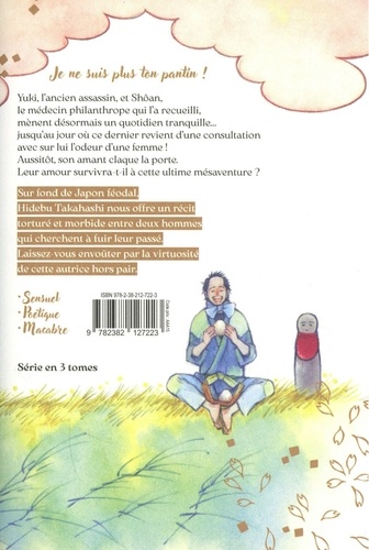 Sur fond de Japon féodal, Hidebu Takahashi nous offre un récit torturé et morbide entre deux hommes qui cherchent à fuir leur passé. Laissez-vous envoûter par la virtuosité de cette autrice hors pair. Yuki, l'ancien assassin, et Shôan, le médecin philanthrope qui l'a recueilli, mènent désormais un quotidien tranquille... jusqu'au jour où ce dernier revient d'une consultation avec sur lui l'odeur d'une femme ! Aussitôt, son amant claque la porte. Leur amour survivra-t-il à cette ultime mésaventure ?