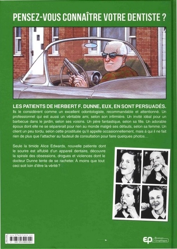 Pensez-vous connaître votre dentiste ? Les patients de Ferbert F. Dunne, eux, en sont persuadés. Ils le considèrent comme un excellent odontologiste, recommandable et attentionné. Un professionnel qui est aussi un véritable ami, selon son infirmière. Un invité idéal pour un barbecue dans le jardin, selon ses voisins. Un père fantastique, selon sa fille. Un adorable époux dont elle ne se séparerait pour rien au monde malgré ses défauts, selon sa femme. Un client un peu tordu, selon cette prostituée qu'il appelle occasionnellement, mais à qui il ne fait rien de plus que l'attacher au fauteuil de consultation pour faire quelques photos... Seule la timide Alice Edwards, nouvelle patiente dont le sourire est affublé d'un appareil dentaire, découvre la spirale des obsessions, drogues et violences dont le docteur Dunne tente de se racheter. A moins que tout ceci soit loin d'être la vérité?