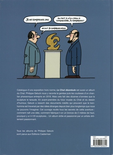 Malgré un report pour cause de covid-19, l'expo Le Chat déambule aura bien lieu. Vingt sculptures monumentales du Chat seront exposées sur les Champs-Elysées du 26 mars au 9 juin 2021 et voyageront ensuite dans une dizaine de villes avant de se poser à Bruxelles à l'occasion de l'inauguration du Musée du Chat et du dessin d'humour. Chaque pièce mettra en scène le célèbre félin dans différentes scènes humoristico-poético-surréalistes. L'idée de cette exposition a germé dans l'esprit de Philippe Geluck alors qu'il travaillait sur le projet du Musée : Si Botero l'a fait, pourquoi pas moi ? Ses personnages sont gros, Le Chat l'est aussi ! Ce catalogue raconte l'aventure de la création de cet événement ambitieux et hors du commun, revient sur la genèse du travail en volume de l'artiste, depuis 1972, et propose évidemment de nombreux dessins en lien avec l'art et la sculpture en particulier.
