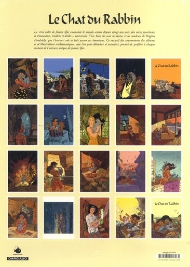 La série culte de Joann Sfar enchante le monde entier depuis vingt ans avec des récits touchants et émouvants, tendres et drôles - universels. C'est bien avec le dessin, et les rouleurs de Brigitte Findakly, que l'auteur crée et fait passer ces émotions Ce recueil des couvertures des albums et d'illustrations emblématiques, que l'on peut détacher et encadrer, permet de profiter d chaque instant de l'univers unique de Johan Sfar.